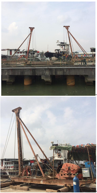 該工程項目是將2個500噸級件雜貨泊位改擴建為1個1000噸級雜貨(兼顧部分集裝箱)泊位。工程內(nèi)容為:新建45噸固定式起重機基礎(chǔ)(其中8根D1200mm鉆孔灌注樁,設(shè)計樁長50m。);對碼頭部分破損的構(gòu)件進行加固和修補;更換、新增橡膠護舷和系船柱;碼頭前沿停泊水域浚深至-4.0米(理論最低潮面)等。