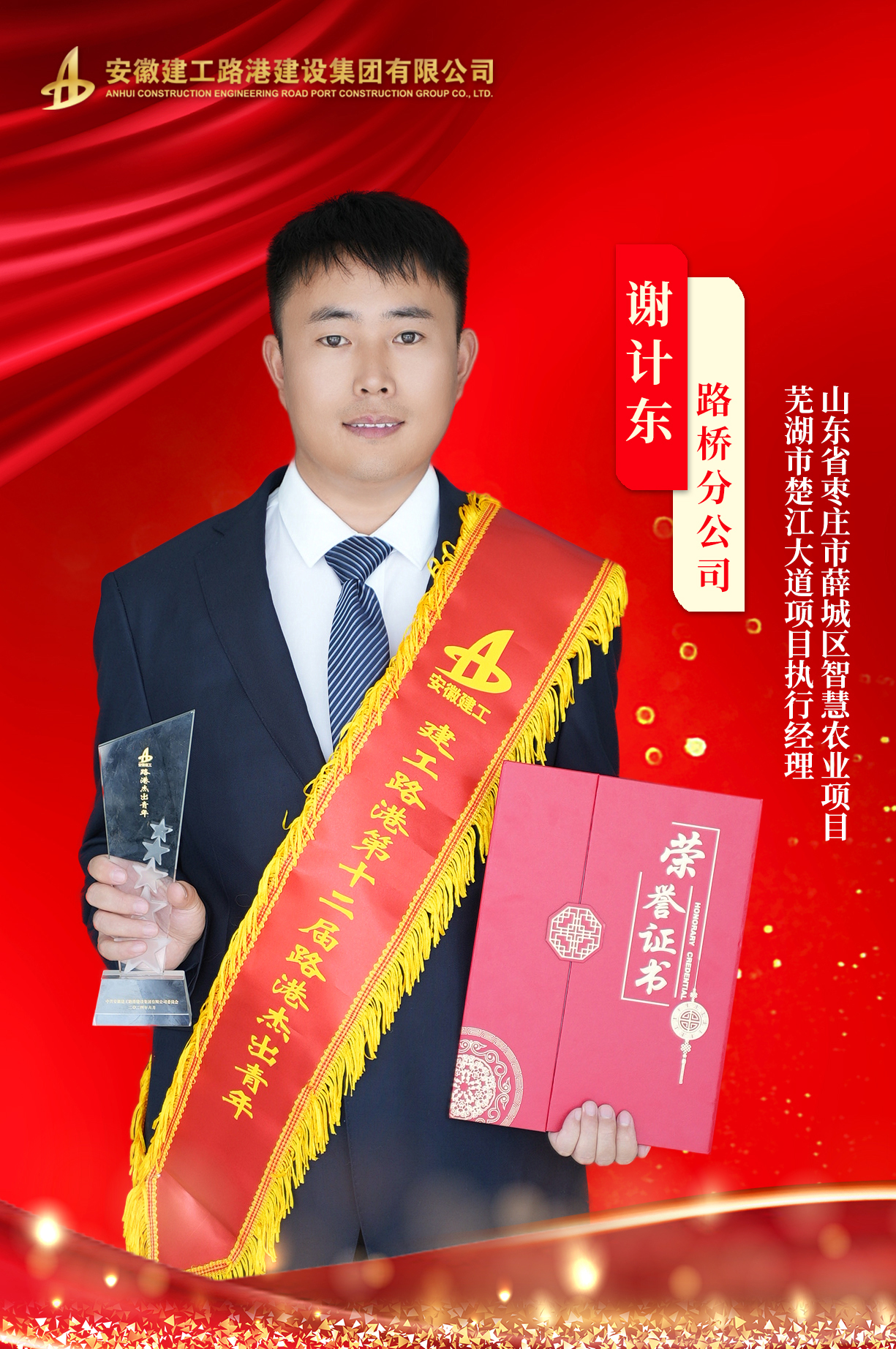 謝計(jì)東,男,漢族,中共黨員,本科學(xué)歷,工程師,一級建造師,現(xiàn)任建工路港路橋分公司山東省棗莊市薛城區(qū)智慧農(nóng)業(yè)項(xiàng)目、蕪湖市楚江大道項(xiàng)目負(fù)責(zé)人。