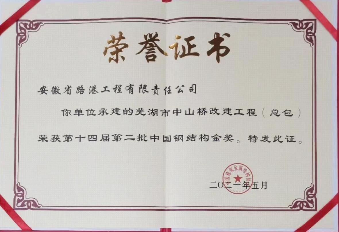 在蕪湖市中山橋項(xiàng)目,他積極配合項(xiàng)目經(jīng)理及總工參與《雙躉船轉(zhuǎn)換頂推施工工藝》討論研究,該工藝獲得多項(xiàng)國家級工法、省級工法、省重大合理化建議,該項(xiàng)目榮獲中國鋼結(jié)構(gòu)金獎、黃山杯等獎項(xiàng)。
