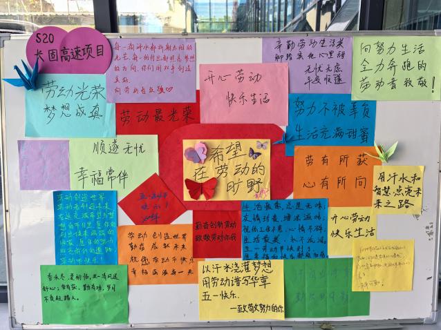 建工路港所屬各單位積極開展“致敬勞動(dòng)者”主題活動(dòng),職工們寫下祝福語,向每一位堅(jiān)守崗位的職工致以最崇高的敬意和最誠摯的祝福。