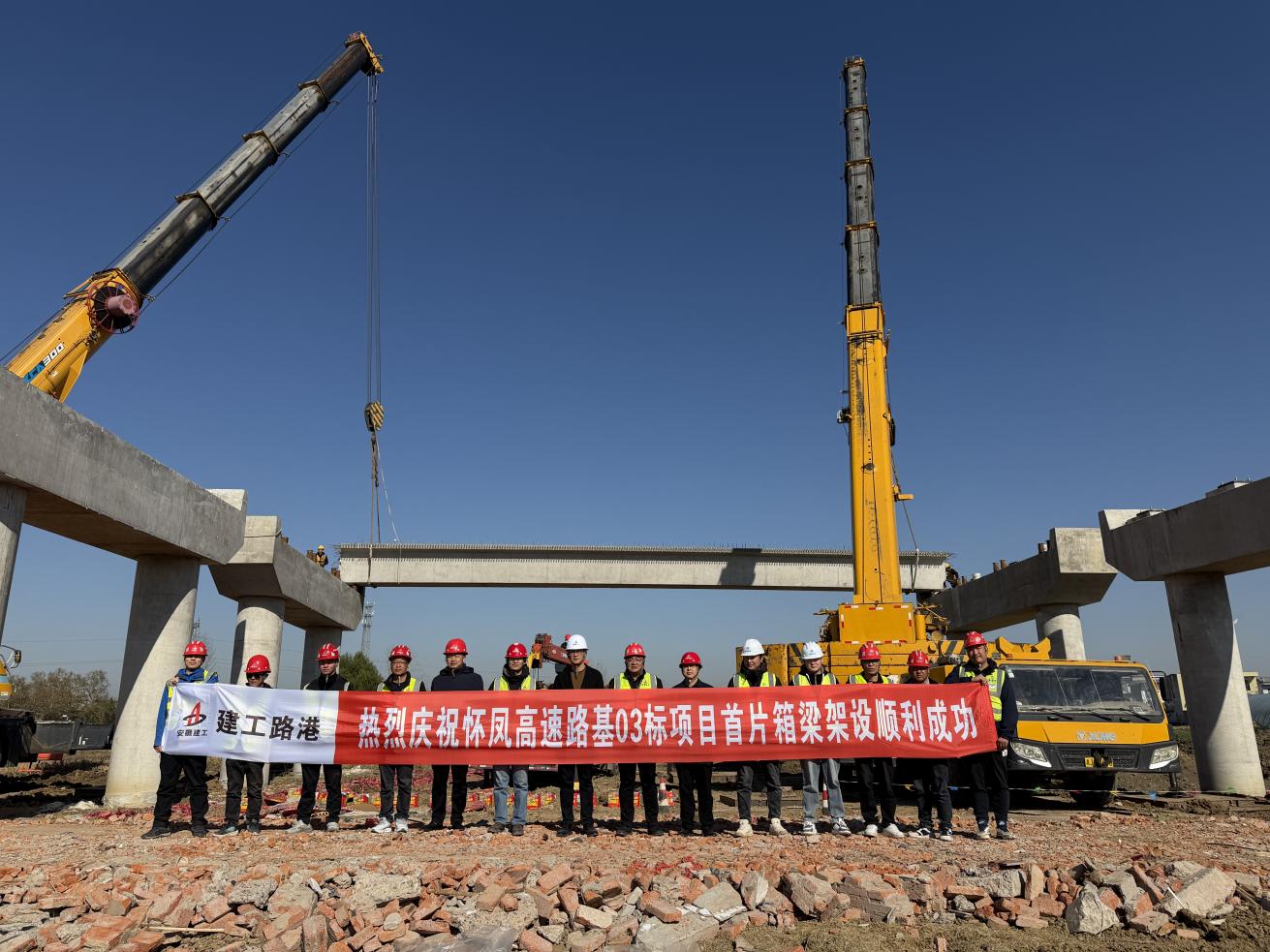 11月19日,建工路港公司懷鳳高速03標(biāo)項目首件25米預(yù)制箱梁順利架設(shè),標(biāo)志著該標(biāo)段橋梁施工正式進(jìn)入上部結(jié)構(gòu)攻堅階段。