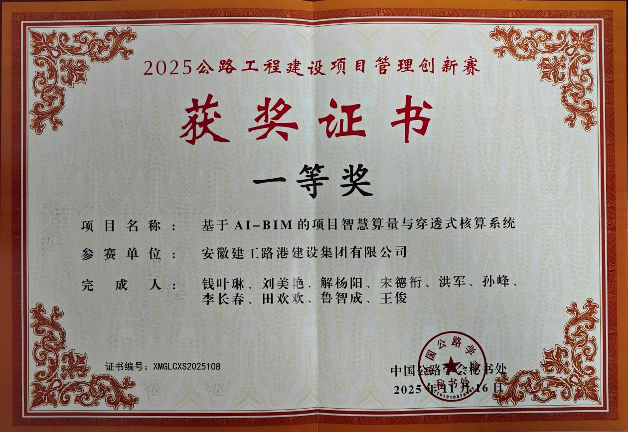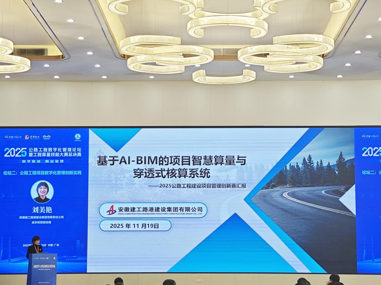 近日,中國公路學會主辦的2025公路工程建設項目管理創(chuàng)新賽在廣州成功舉辦,建工路港公司憑借“基于AI-BIM的項目智慧算量與穿透式核算系統(tǒng)”創(chuàng)新型項目,在197個參賽項目中脫穎而出,榮獲創(chuàng)新賽一等獎,得到中國公路學會各位評審專家的高度認可。